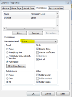 In the Permissions section below, click on the drop down arrow and select Editor from the list. Click Apply at the bottom. Now, anyone with whom your share your calendar will be an Editor. You may change that by following the same procedure and switching the Permission Level.