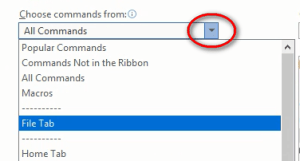 There are a few more “File tab” commands I like, so let’s find change “All Commands” to “File Tab.”