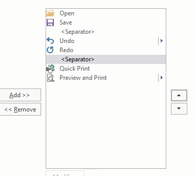 Add another above Quick Print so that your print commands are separated from Undo and Redo. Does yours look like this now?