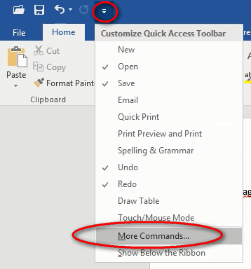 Now when you are working in Word, you have all your (or my) most used commands available with a quick click. Give it a month or so, then come back to the Customize button and make any changes that you want. This is your Quick Access Toolbar, so make it just the way you want it.