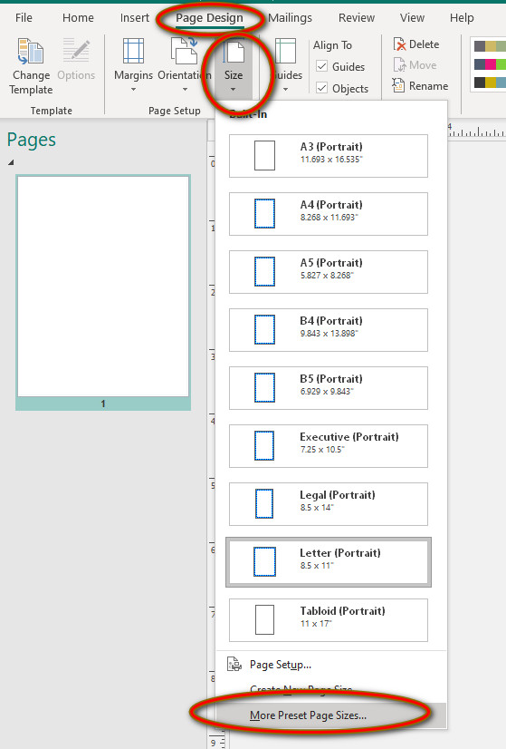 To find that size in Publisher, from the Page Design tab>Page Setup>More Preset Sizes.