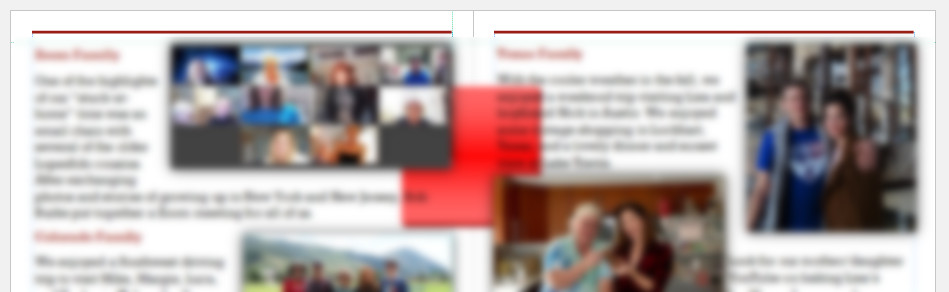 Tip: Sometimes you want to cover up one of the “red squares” or bars of color on a the first page, or any page, without changing your Master page. Just draw a white box with no outline (or a white outline) over the red square or bar of color. Your Master page objects will always be on the bottom layer of your Publisher document. For about layers, see Publisher Layers – Bring Forward and Send Backward.
