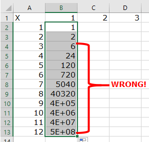 You will see some very large numbers appearing in Column B that do not look like a multiplication table. Those relative references did not work Click on Cell B3 and click in the Formula Bar to see what went wrong! When you moved down one cell to paste, your Cell references also moved down one.