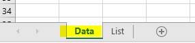 Add a second worksheet by clicking the plus next to the List tab. Name this worksheet “Data.” This is where we will enter the Data. We will check if it is “Valid” against the List. Now you understand the term “Data Validation.” Move the Data tab to the left of the List tab. That way your data entry clerks will open the spreadsheet to the Data page rather than messing up the List.