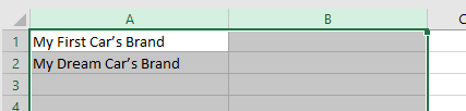 Click on Cell B1, the blank next to “My First Car’s Brand.”