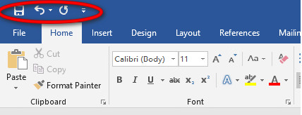 By default, the Quick Access Toolbar used to be in the upper left of your screen. It used to have a Save icon, Undo & Redo icons. You could easily add other commonly used icons/commands by clicking the “more” arrow to the right of the Quick Access Toolbar. (See my blog MS Office / Word / Excel / PowerPoint: Customize Your Quick Access Toolbar.)