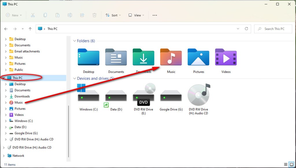 The nicest things about Windows Media Player is that it happily knows just where to put your music. Every PC has a built-in Desktop, Documents, Downloads, Music, Pictures, and Video folders. Find the Music folder on your left Navigation Pane of File Explorer. (If it is hiding, find “This PC” first, then locate the Music folder.) After the “Rip CD” is complete, open your computer’s Music folder.